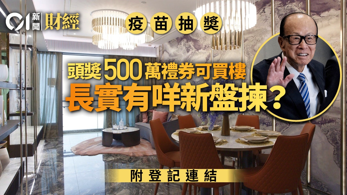 長江集團、李嘉誠基金會 2,000 萬禮券接種疫苗大抽獎,明日(19日)起接受市民登記。頭獎可獲得價值 500 萬元的長江集團精選禮券組合,可以用作購買長實一手樓、在長江旗下指定商場商戶消費或在百佳、屈臣氏、豐澤購買產品等。